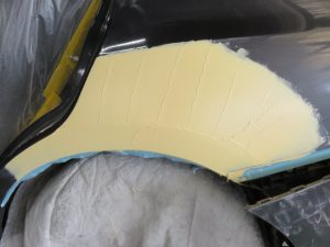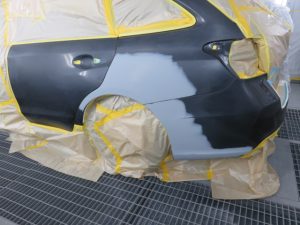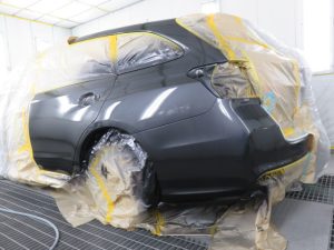 塗装作業に入ります。バンパーも部分ぼかし。「安くキレイに」は高度な技術が必要です。