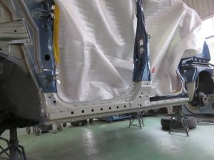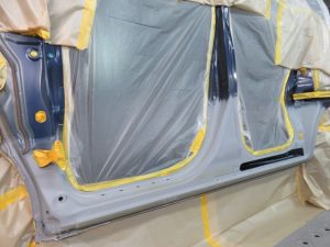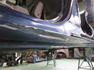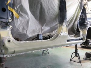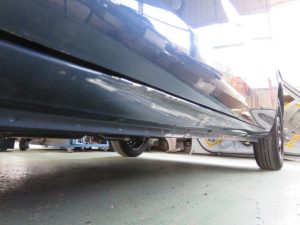 ドアの下の細いパネルをロッカーパネルと言いますが、今回はパネル修正が難しいため、このパネルを新品に交換させていただきます。