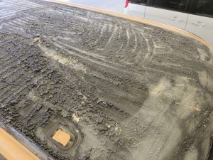 ボンネットは艶がなくなり、クリヤー層が浮き始めています。
